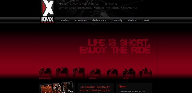 The home page bears no resemblance to a blog, with the exception of the presence of a somewhat blog-like footer. The site includes a number of different kinds of page templates. There are pages for the different Kart models, pages for accessories, and pages for general company information. Each type of page, because they have their own unique functions, is slightly different from the other pages. The theme, though, is consistent throughout the site. The e-commerce aspects of the site are powered by the Shopp plugin.