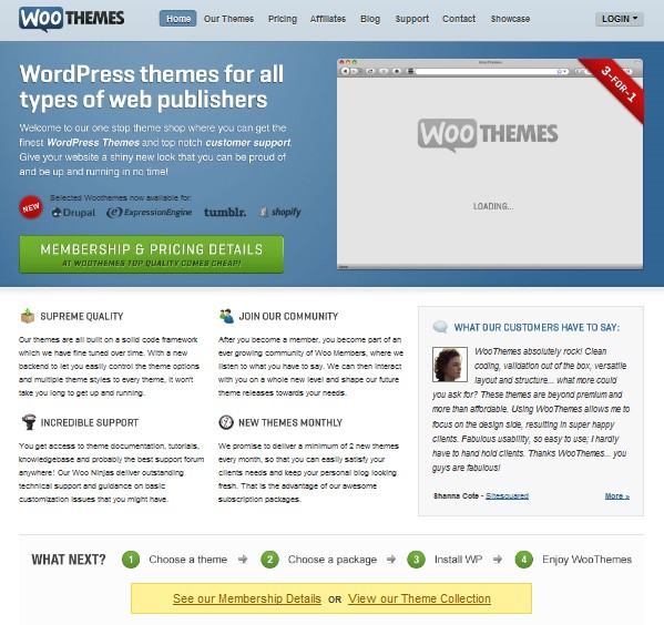 Woo Themes is well known for its huge selection of premium wordpress themes. This is awesome for someone like me who has developed hundreds of different niche websites. It’s boring to use the same WordPress theme for all of them, and that’s why I enjoy subscribing to Woo Themes’ Club Membership. It gives me access to the entire Woo Themes collection, plus two new WordPress themes a month. You can use woothemes coupon save.